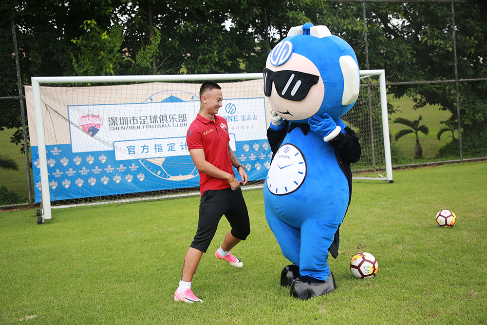 會后,雙方嘉賓移步至足球場觀看深足球員馳騁球場的颯爽風姿,一睹球員訓練風采。雷諾表品牌IP雷小諾也出現(xiàn)在球場,與球員們踢球互動。戲精雷小諾奔跑在球場上,三招兩式,踢球翻身現(xiàn)場就引來熱情圍觀。