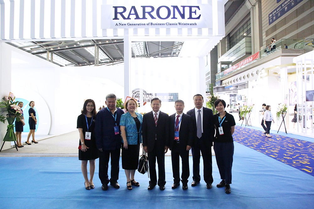 中國輕工聯合會張崇和會長;中國鐘表協會張宏光副理事長;中國鐘表協會丁言行副理事長一行蒞臨雷諾表展館參觀指導