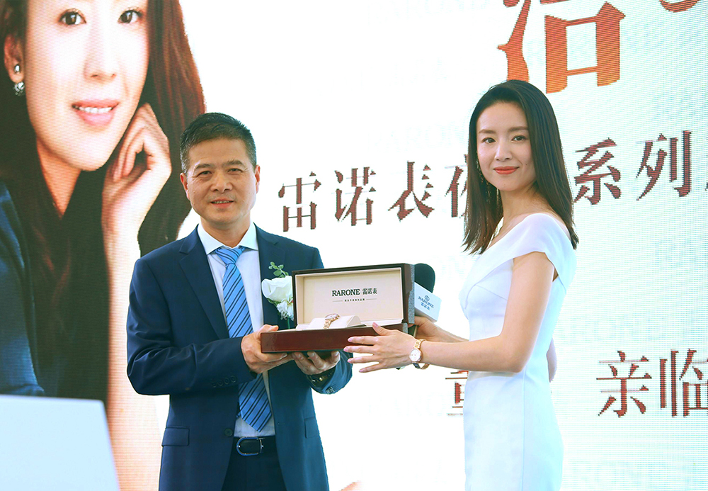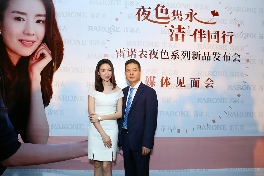 董潔老師與雷諾表總經理詹江洲先生接受媒體采訪,并合影留念。