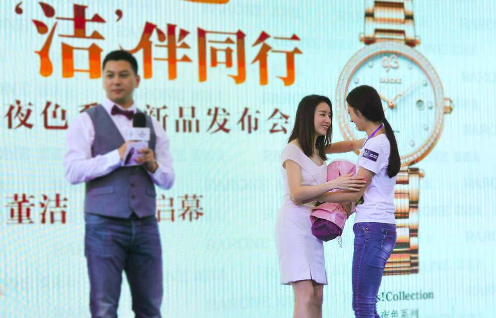 2017年4月30日,雷諾表攜手品牌摯友董潔,在南寧百貨大樓發布夜色系列銀杏新品!剛剛過完生日,被兩大男神陳坤、竇驍同祝生日快樂霸屏微博熱榜的董潔,以一身梨白一字肩優雅小禮服驚喜現身南寧,引來當地媒體和粉絲的強勢圍觀!董潔佩戴雷諾表夜色系列新品為發布會正式啟幕,并見證雷諾表義賣公益助學,與雷諾表一起給南寧的朋友帶來一場有溫度的手表文化盛宴。
