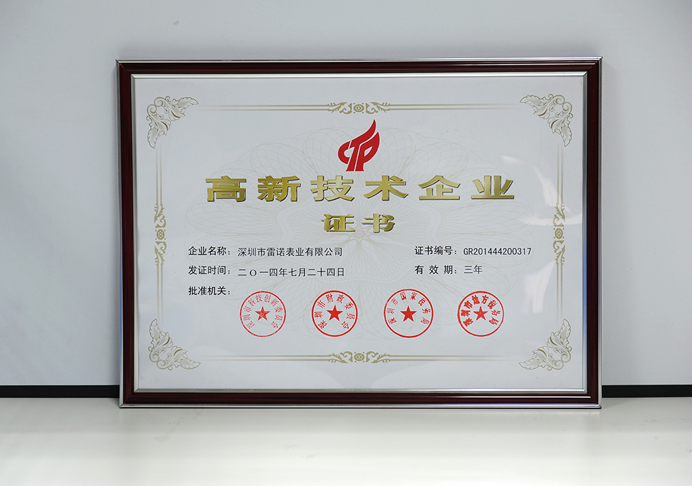 經(jīng)過(guò)國(guó)家科技部、財(cái)政部等相關(guān)部門(mén)的嚴(yán)格審核,雷諾表被認(rèn)定為“國(guó)家級(jí)高新技術(shù)企業(yè)”!這標(biāo)志著雷諾表在自主知識(shí)創(chuàng)新、核心專利產(chǎn)權(quán),科技技術(shù)研發(fā)及成果轉(zhuǎn)化方面,均達(dá)到行業(yè)水平,且在鐘表領(lǐng)域中具有較強(qiáng)的市場(chǎng)價(jià)值和資本價(jià)值。