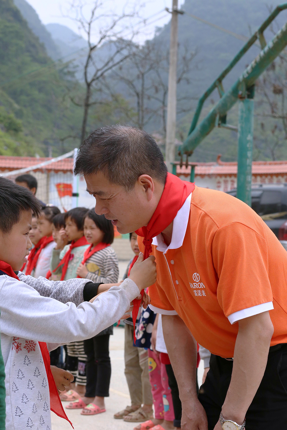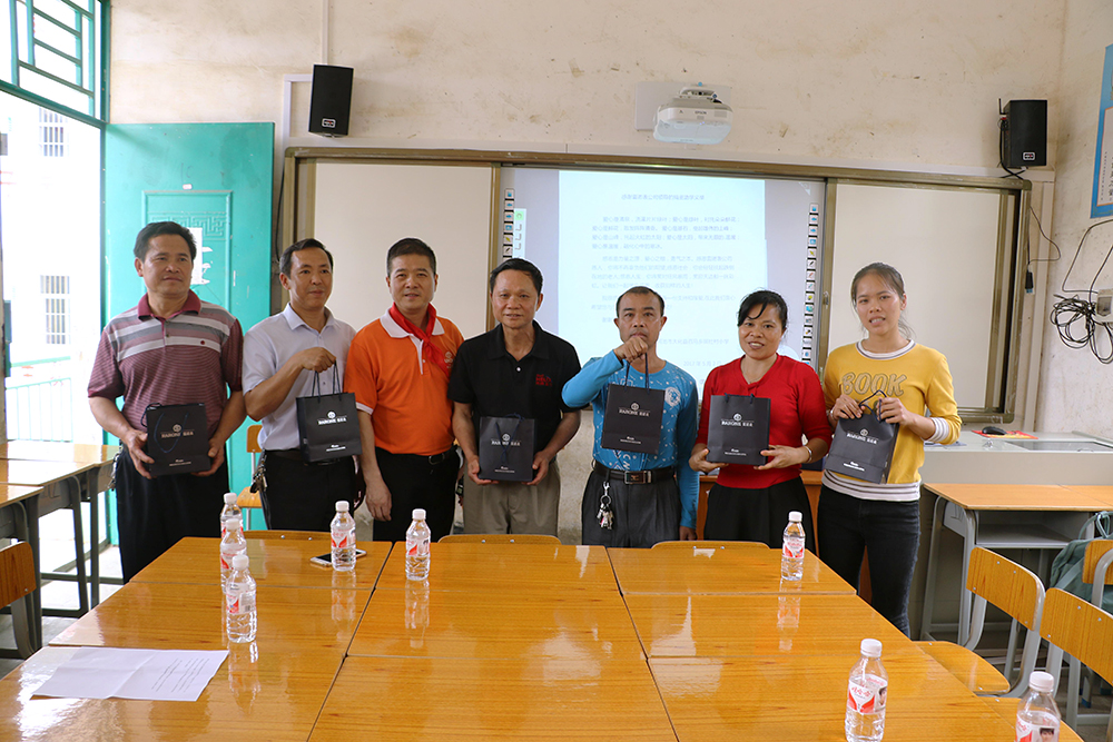 雷諾表愛心小組在總經理詹江洲先生的帶領下,從南寧市區(qū)出發(fā),一路上綠水青山風景秀美,但在快要到達同社村的山路上,我們真正見識了九曲十八彎的大山路。經過3個多小時的長途跋涉,我們的愛心車輛終于抵達同社村小學,遠遠就看到學校的孩子在校門口等待我們,當孩子們親手為我們系上鮮艷的紅領巾,雷諾表愛心小組的每個成員的使命感愈加強烈。