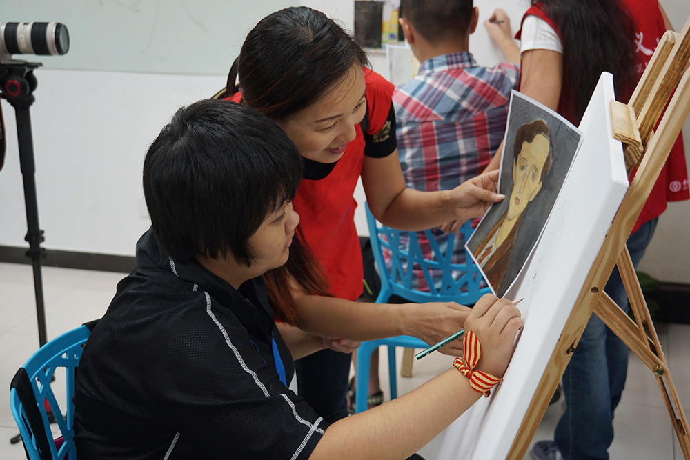 基金會通過在全市自閉癥兒童中進行篩選,選拔出十幾名具有繪畫基礎的自閉癥孩子,免費為他們開展為期1年的助繪班指導,激發其繪畫潛能,培養他們的藝術修養,為他們帶來藝術教育的機會。